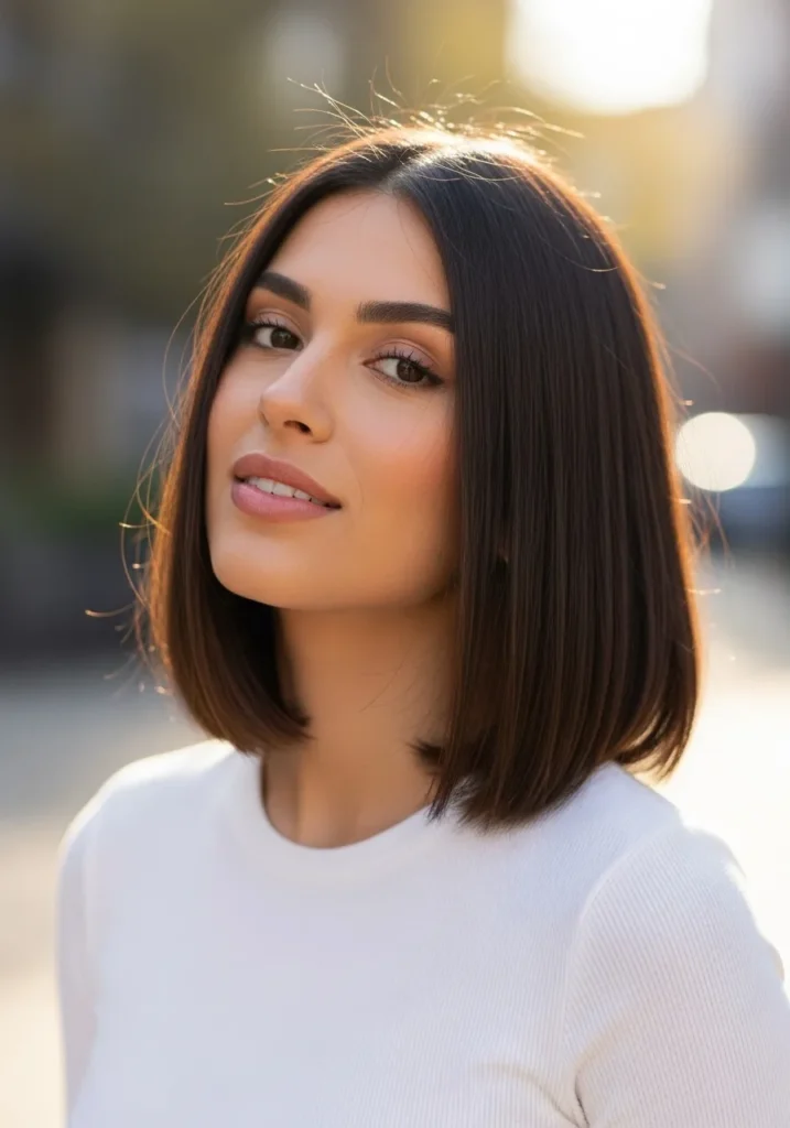 I love how this kind of sleek lob makes my hair look fuller without needing a ton of styling. The blunt edges give me that quiet volume I’m always chasing and the shine makes it feel like I suddenly have way more hair than I actually do. It is simple, elegant, and honestly one of those styles that makes me feel instantly put together even on the laziest mornings.