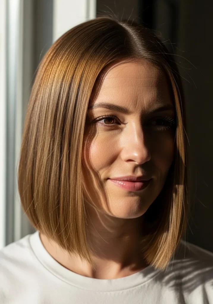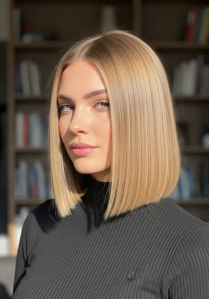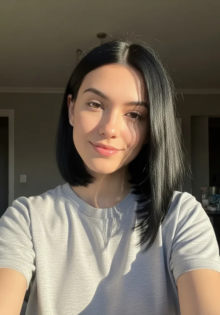 I love this look because it gives me that effortless cool feeling without needing a ton of styling. The gentle angle frames the face in such a flattering way and the shine makes it look like I actually have my life together even on the days I’m running on dry shampoo and iced coffee. It’s simple yet bold and honestly that combo always makes me feel extra confident.