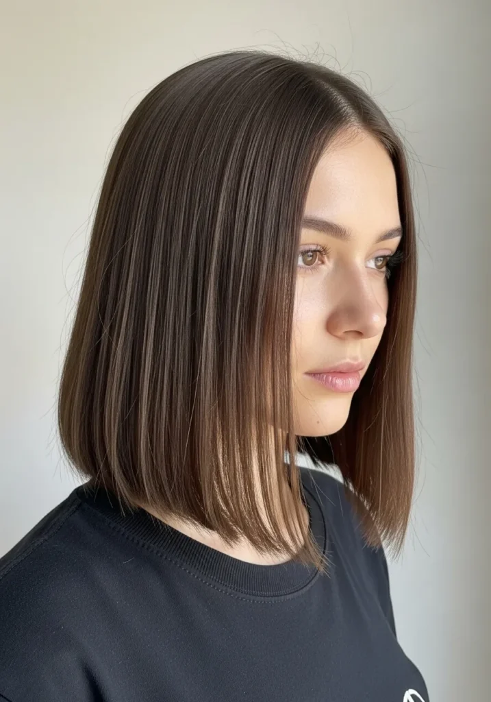 I love this kind of cut because it gives me that crisp structured look without feeling too sharp. The slight graduation adds a tiny boost of volume that makes my hair look fuller even on the days when it absolutely refuses to cooperate. The length still feels feminine but the blunt edges add confidence which I adore. It is one of those hairstyles that makes me feel like I have my life together even when I very much do not.