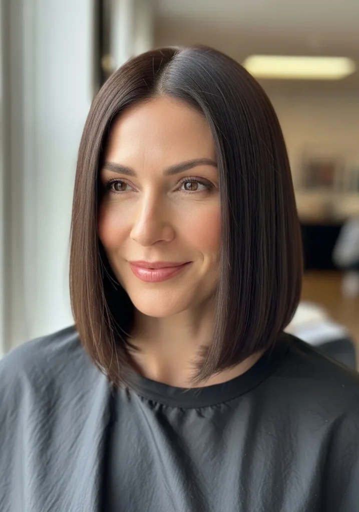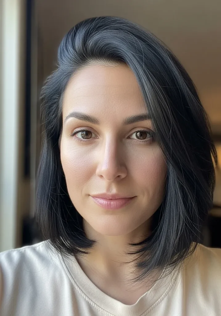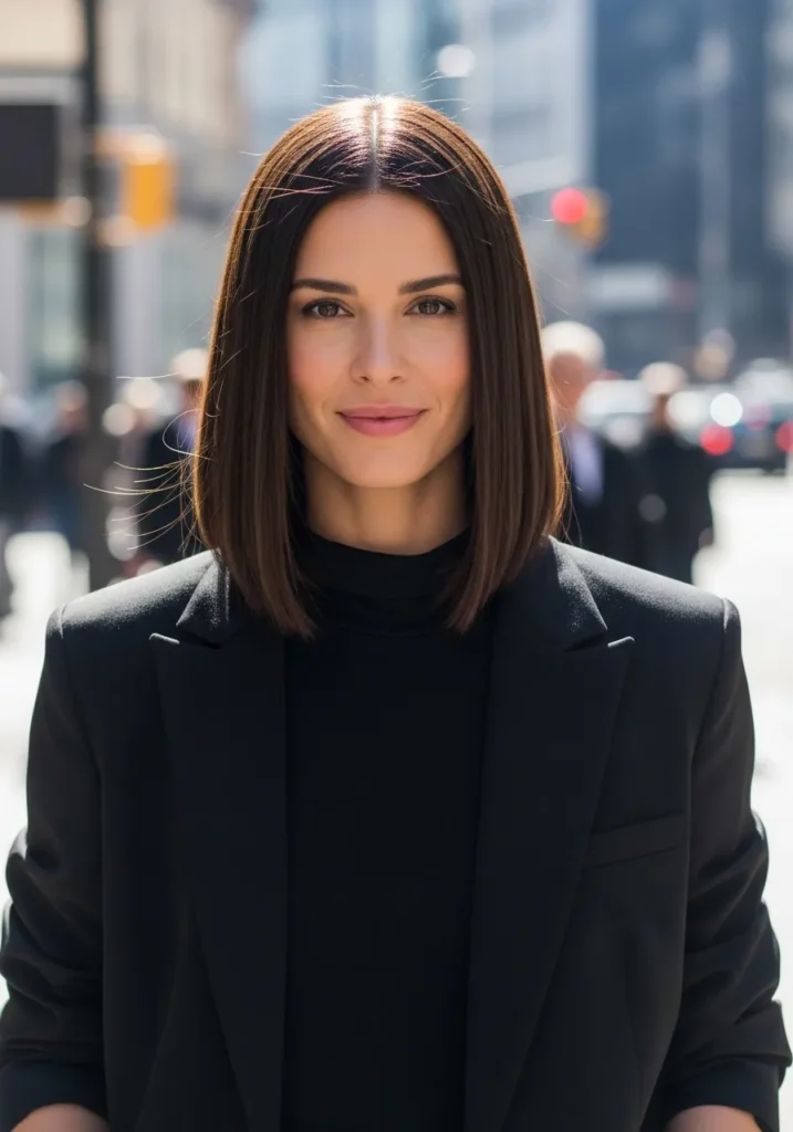 I love this kind of lob because it makes me feel instantly put together even on days when I am running late and pretending I have my life fully organized. The shine makes it look like I spent way more time styling than I actually did and the length is long enough to feel feminine but short enough to stay manageable. It frames my face in that flattering straight line that always photographs well which honestly feels like a small miracle. This is the kind of sleek bob that never lets me down.