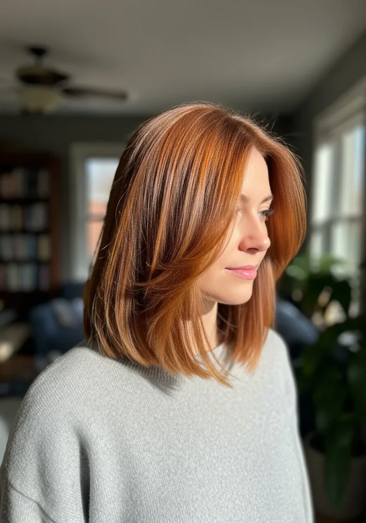 Soft Copper Long Bob With Feathered Ends