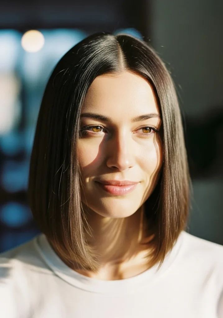 I love this style because it instantly makes me feel put together even on days when I am running around with zero extra time. Something about the clean lines and silky straight texture just gives me a confidence boost. The center part also helps my features look more symmetrical which is always a win. If you’re into hair that looks chic without trying too hard this kind of sleek lob is one of those cuts that never lets you down.