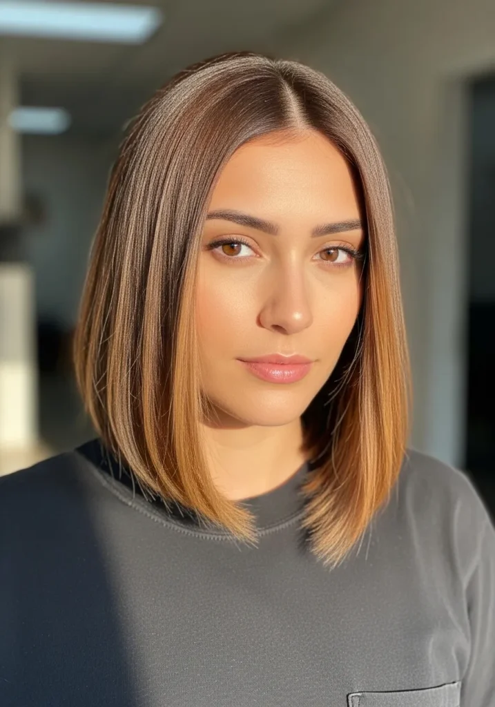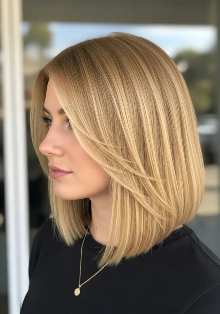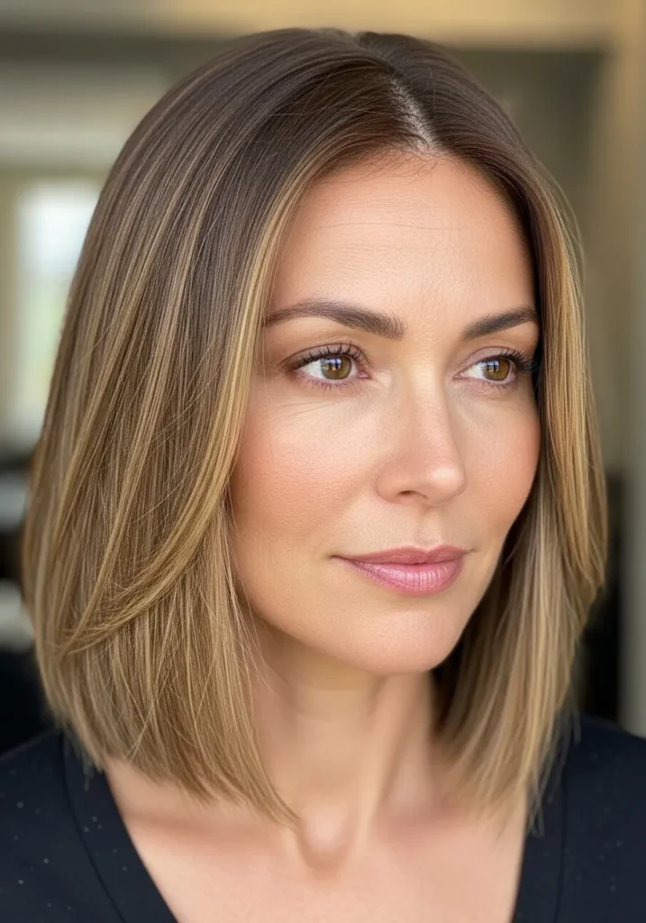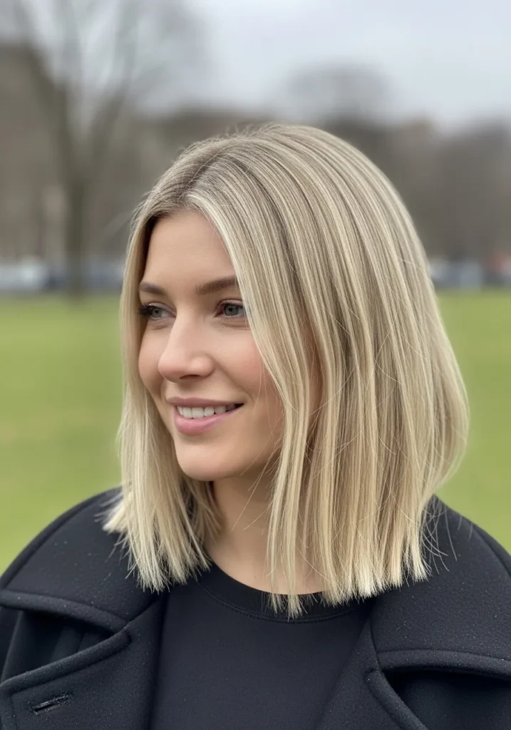 I love this style because it instantly makes me feel put together even on days when I’m barely functioning. The straight shape frames my face in such a soft way and those blended highlights give my skin a gentle glow. It is one of those lobs that makes me look like I planned my whole day even if I actually just brushed my hair and walked out the door. It is simple pretty and always flattering.