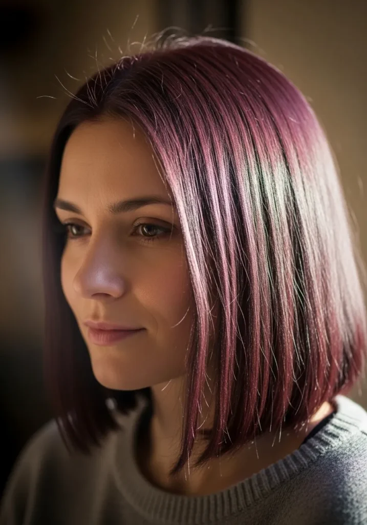 Sleek Plum Tinted Long Bob