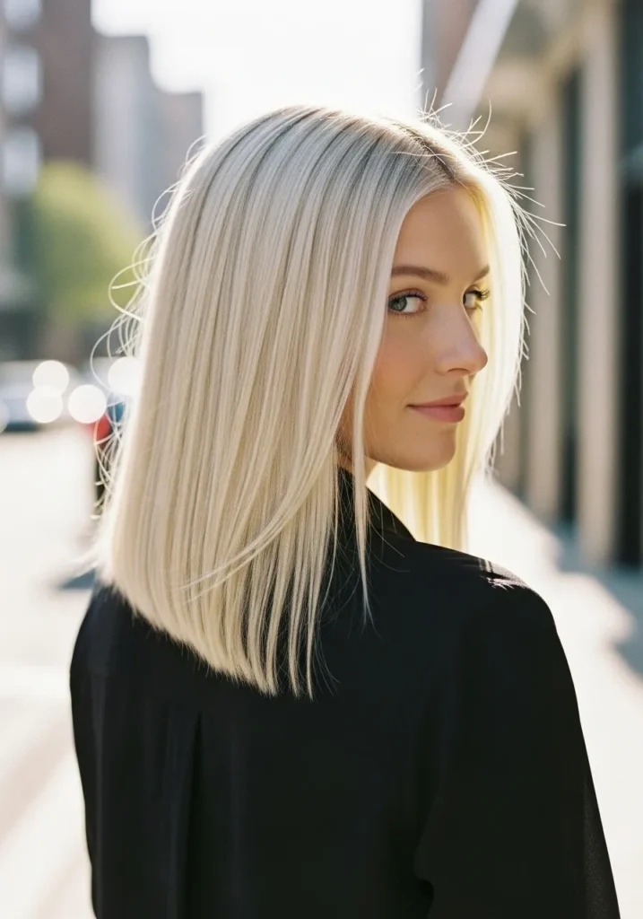 Sleek Mid Length Lob With Soft Blonde Shine