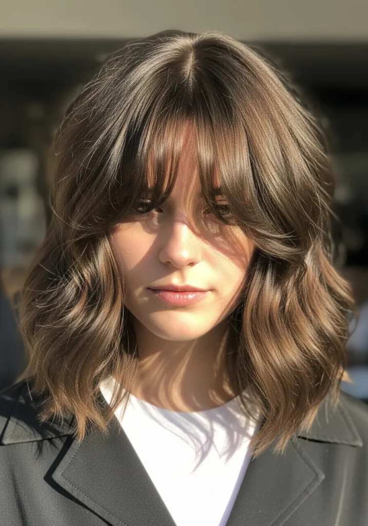 I love how this style instantly softens my features. The fringe gives me that effortless French-girl energy while the waves add movement without needing much styling at all. It is the kind of haircut that makes me feel put together even on days when I barely try.