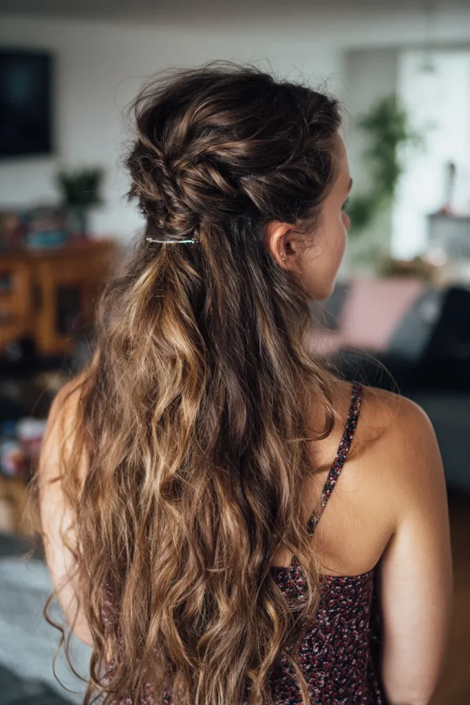 Using the right accessories can also elevate the look. A simple clip, ribbon, or a few delicate pins can turn a casual half-updo into something that feels more styled and intentional without losing that effortless charm.