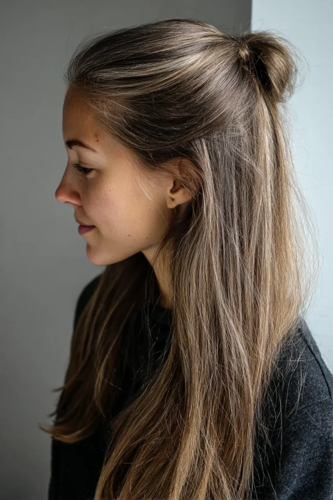 Minimalist Sleek Half Bun with Ash Brown Tones