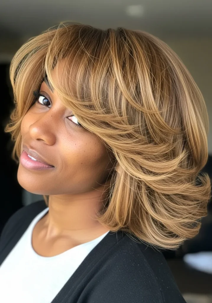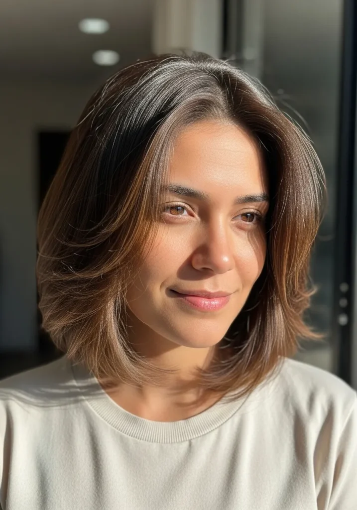 Layered Feathered Bob With Sun Kissed Warmth