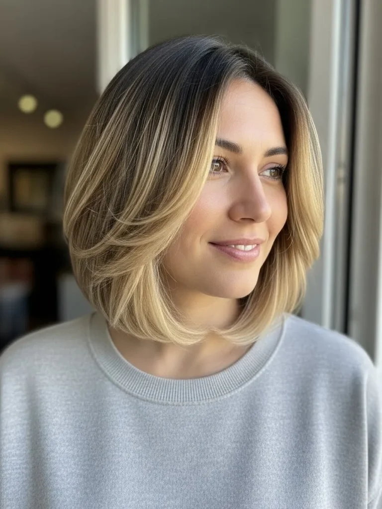 Soft Layered Bob With Natural Sunlit Texture