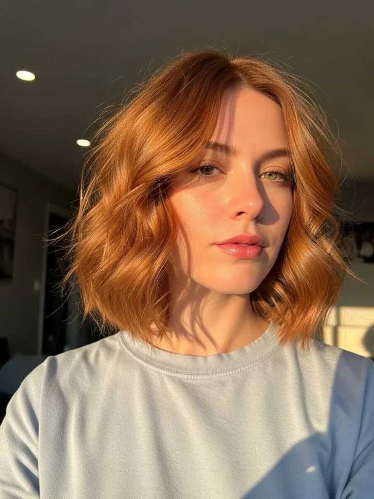 I love how inviting this color feels and how the waves brighten my features. It’s one of those cuts that instantly boosts my mood because it feels lively without being high maintenance. The copper tone alone makes me feel like I’m glowing a little more than usual.
