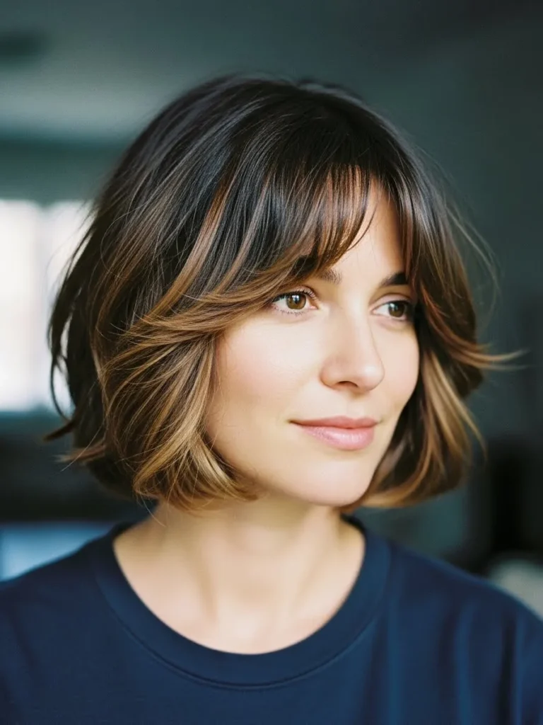 I really like how this haircut feels casual and lived in. The layers add interest without trying too hard, and the bangs soften the whole look. It feels like the kind of bob that grows out beautifully and never feels fussy.