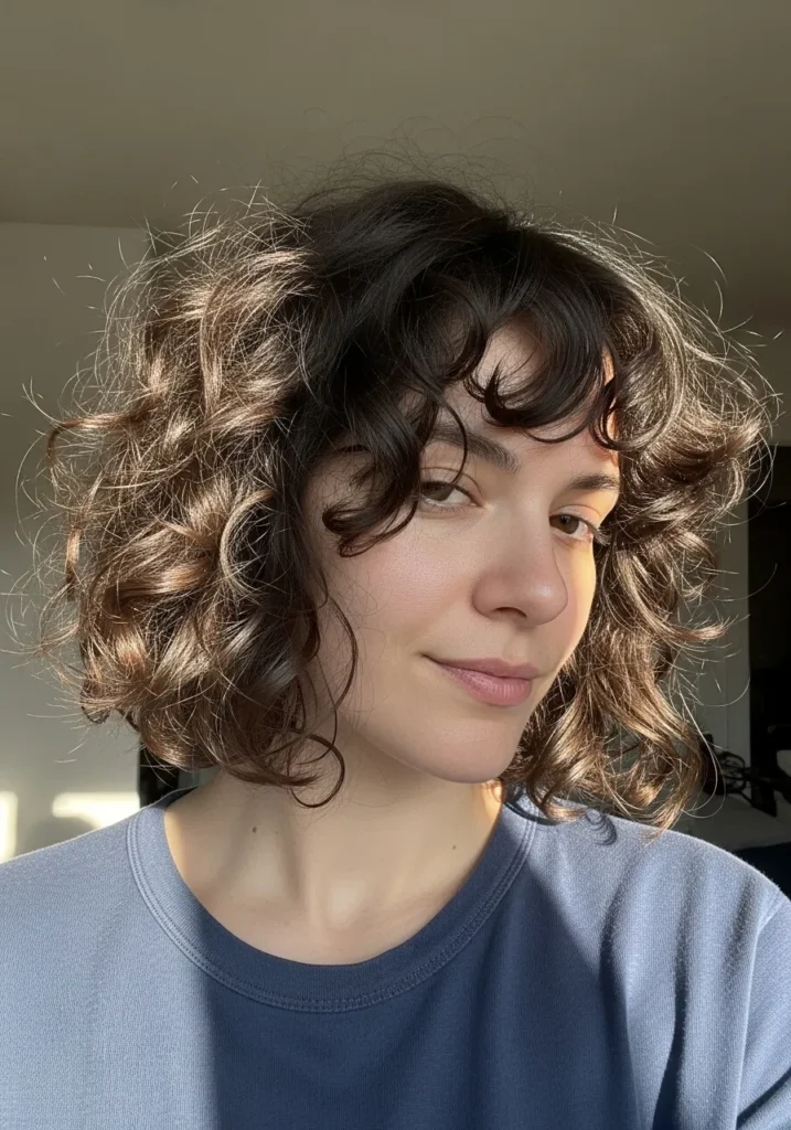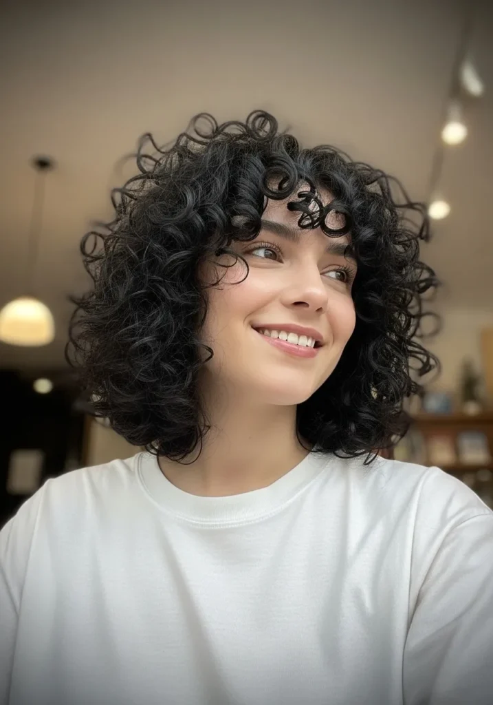 Soft Curly Bob with Playful Fringe
