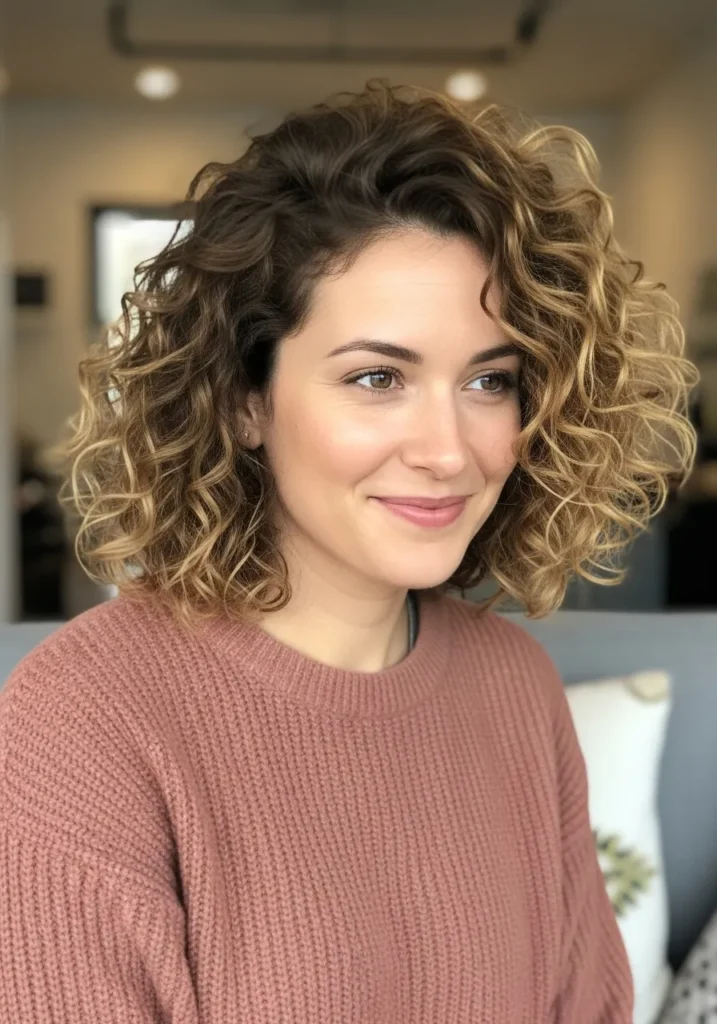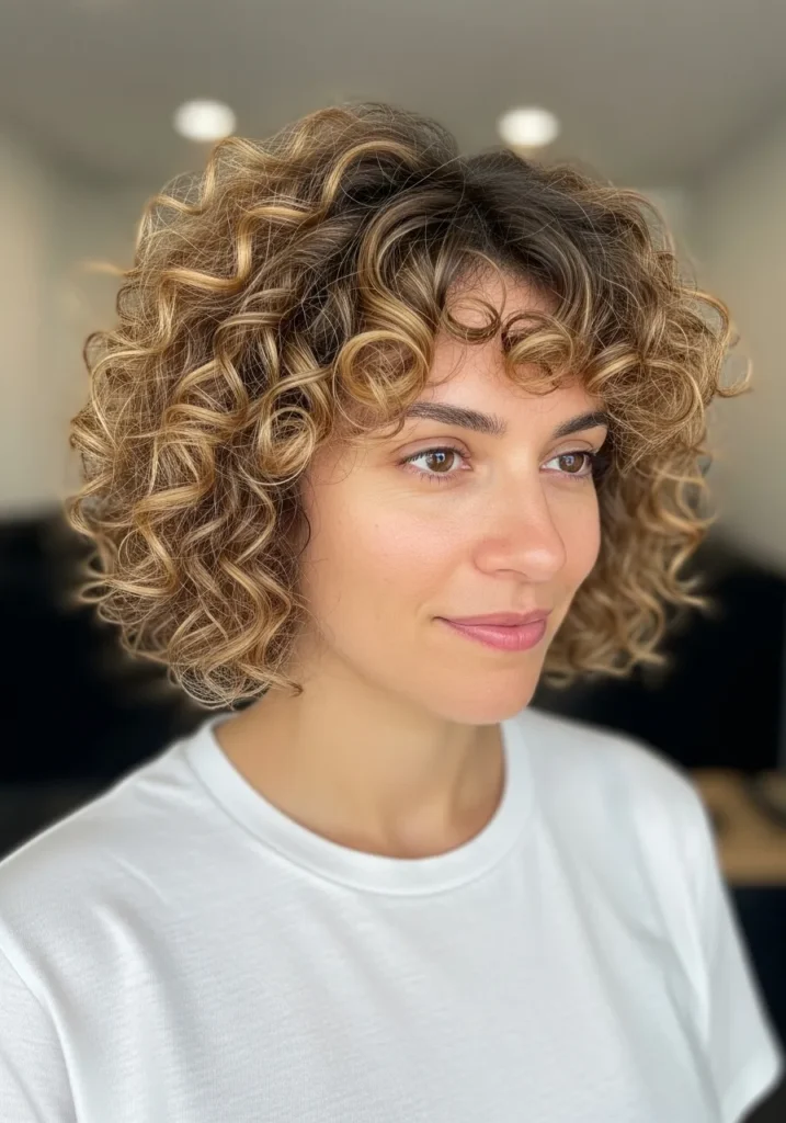 Tousled Curly Bob With Soft Golden Definition