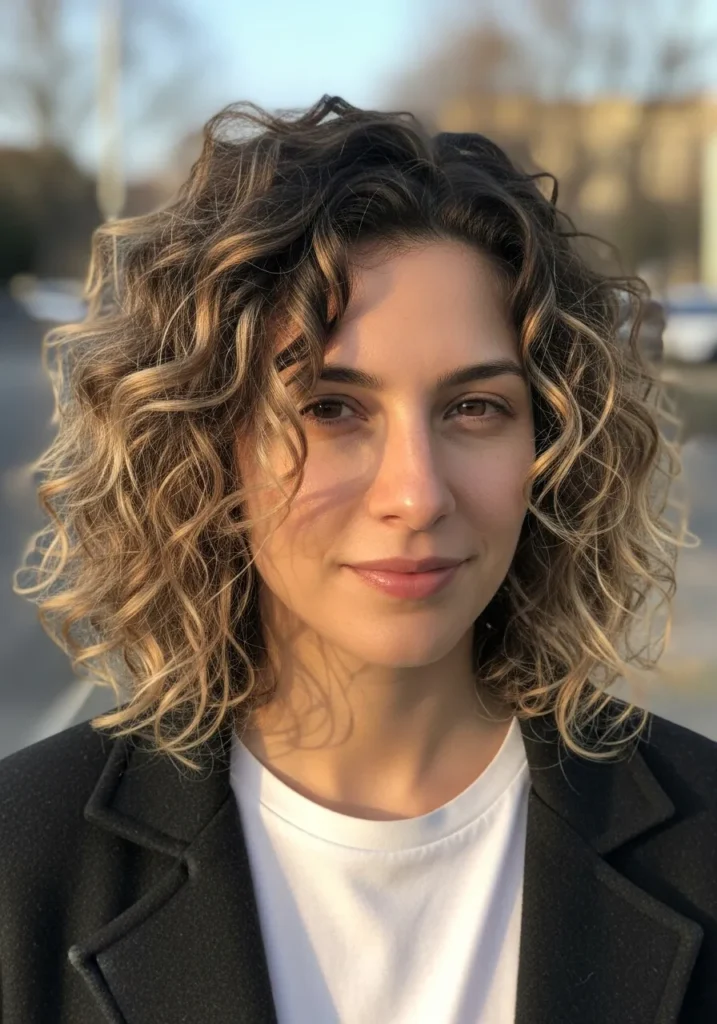 Soft Curly Bob With Sunlit Definition