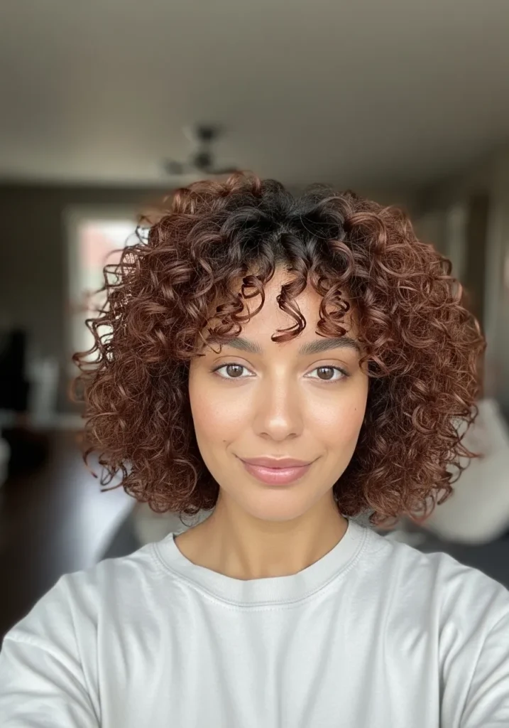 I love this kind of bob because it gives my curls room to breathe while still looking shaped. The soft layers keep the volume in check and the length is so easy to manage. Something about the warm tone also makes my face look brighter which I never complain about. It is the kind of cut that makes me feel put together even on days when I am absolutely not trying.