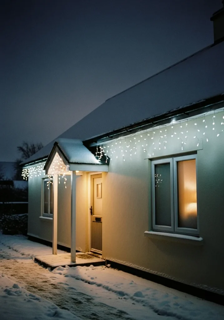 Cozy Cottage with Snowy Icicle Lights