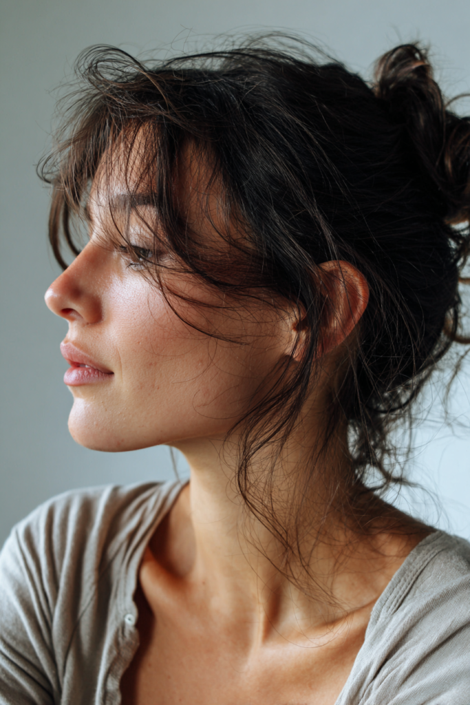 This is perfect when your hair is not freshly washed but you still want a soft, put-together look. A few loose pieces around the face make it feel effortless and fresh.