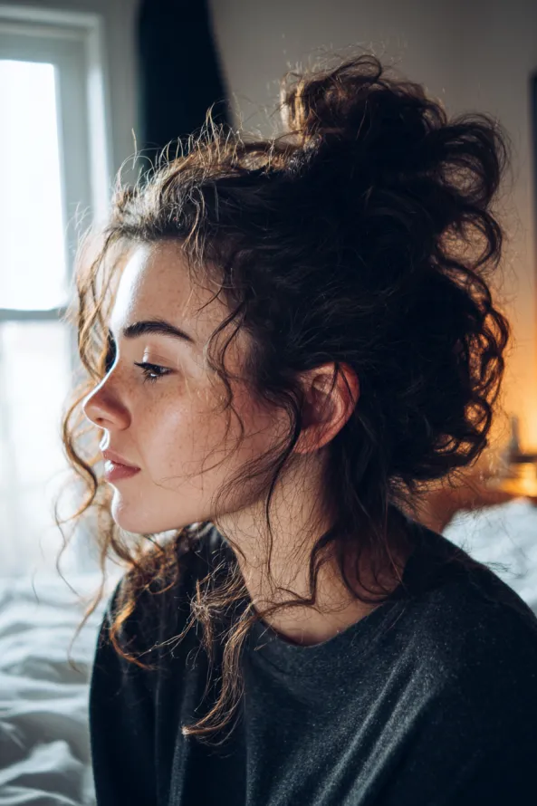 Messy Curly Top Knot