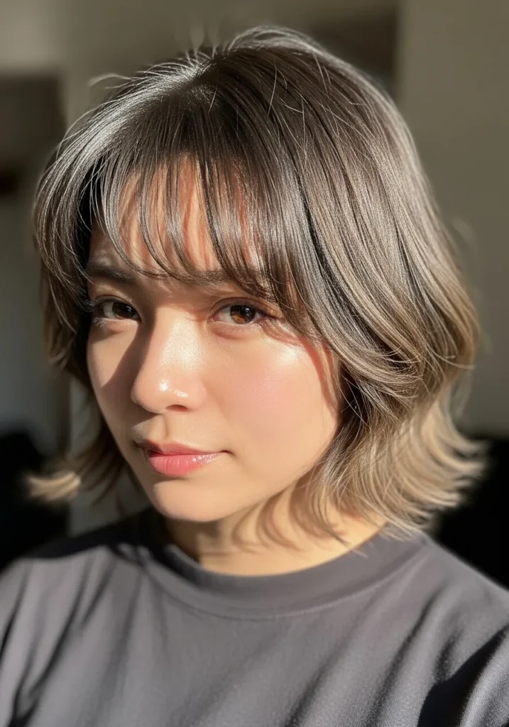 Silky Ash Wavy Bob With Delicate Curtain Fringe