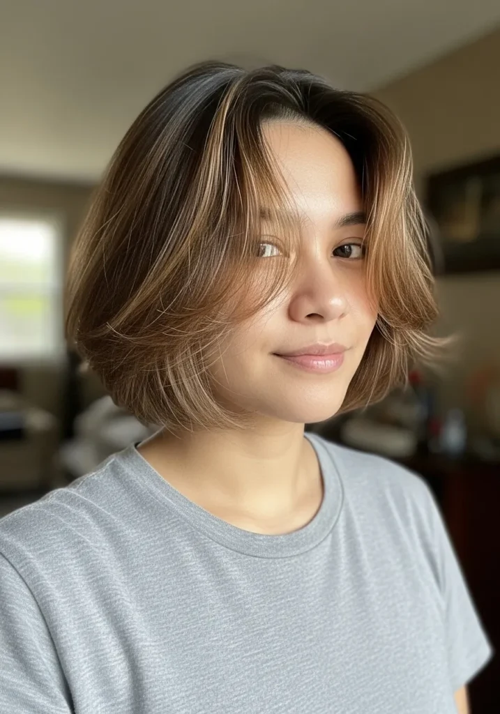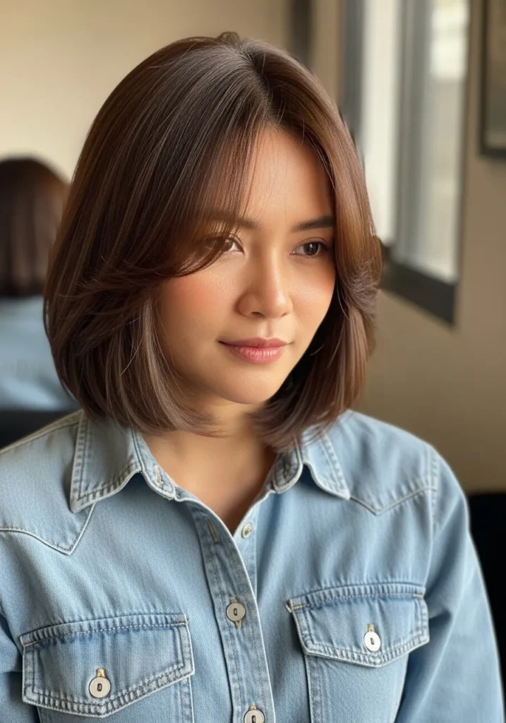 Airy Mushroom Brown Bob With Flowing Curtain Layers