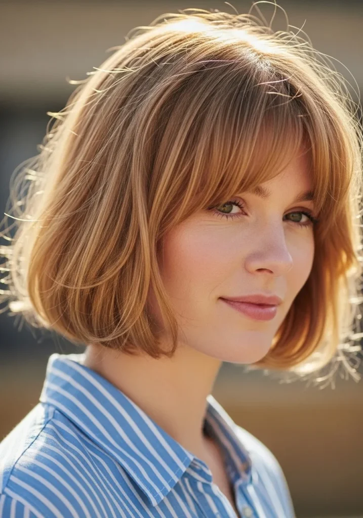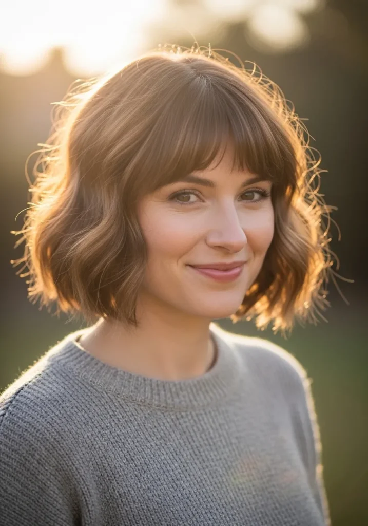 Sunlit Wavy Bob With Soft Curtain Fringe