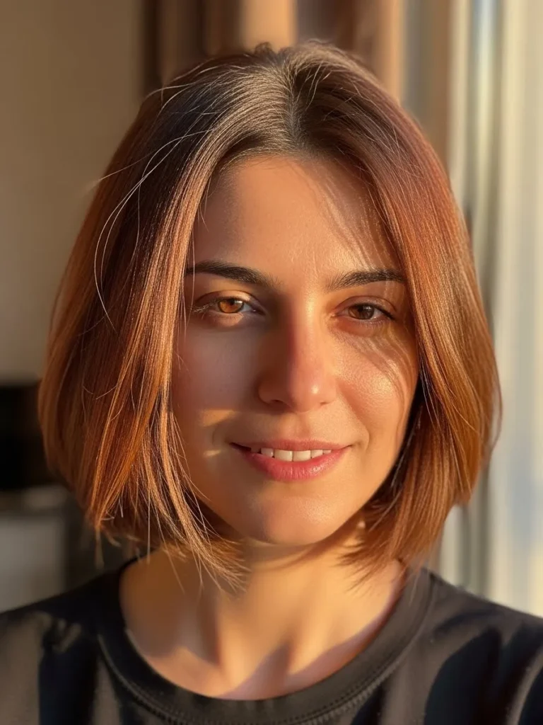 I love how comforting this cut feels. It has such a soft lift that makes everything look brighter and the warm copper tone gives it a cozy glow. It is one of those bobs that always feels flattering no matter what I am wearing.