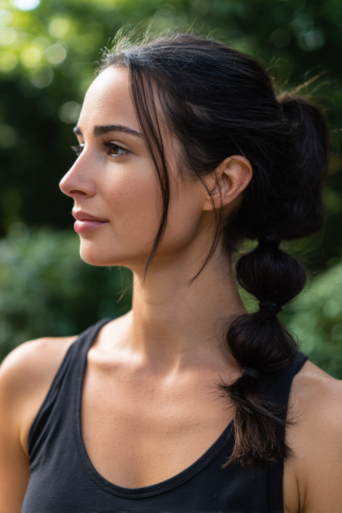 I honestly live for a style like this when the humidity starts to kick in and I just want my hair off my neck without looking messy. It acts like an instant mini face lift by drawing everything upward and really making your cheekbones and jawline pop. I find it so flattering because it balances that sporty vibe with a touch of elegance so you can wear it to the gym or out to a nice brunch. Plus it stays perfectly in place all day long which is exactly the kind of low maintenance energy I need during the summer.