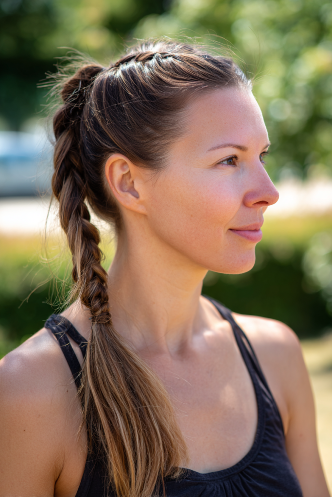 A braid added to your ponytail keeps things neat while giving extra texture. It is a great option when you want your style to last longer throughout the day.
