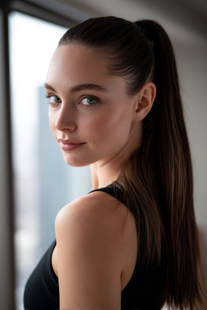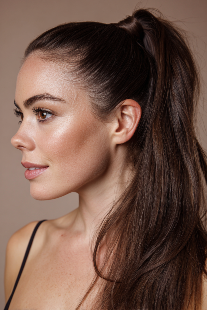 I always feel like a total boss whenever I rock a ponytail this sleek and long. If you are into a style that makes a serious statement without needing a bunch of accessories then this is your golden ticket. It feels so flattering because the height really elongates my neck and gives my face a lifted and wide awake look. I honestly think it is the ultimate confidence booster for those nights when you want to feel a little extra fancy and totally unstoppable.