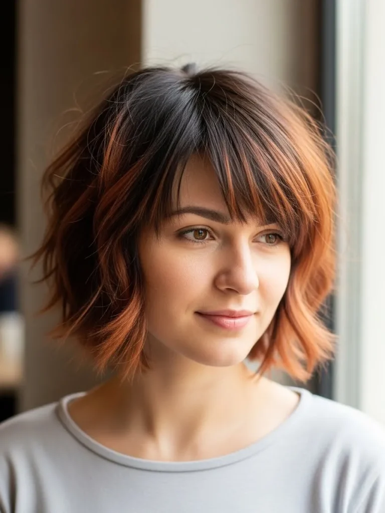I’m absolutely loving the boldness of this pixie! The choppy layers give it that perfect relaxed vibe, but the warm highlights bring an extra pop of fun. It’s perfect for someone who wants a bold yet low-maintenance style that still feels incredibly stylish.