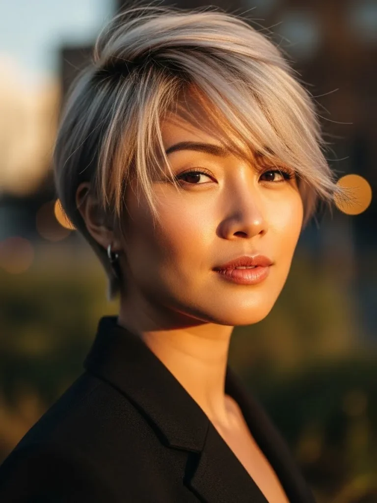 I adore how this pixie feels both polished and laid-back at the same time. The side-swept look adds a touch of elegance, while the choppy ends keep it playful. It’s a timeless cut that gives you the best of both worlds—chic and effortless.