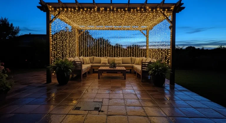 I absolutely love how this design feels both nostalgic and magical. There’s something about that gentle, worn texture of the wood paired with the delicate lights that makes me feel instantly calm. It’s proof that you don’t need anything flashy to make your backyard shine—just a few glowing lanterns, a little creativity, and a cozy spot to gather under the stars.
