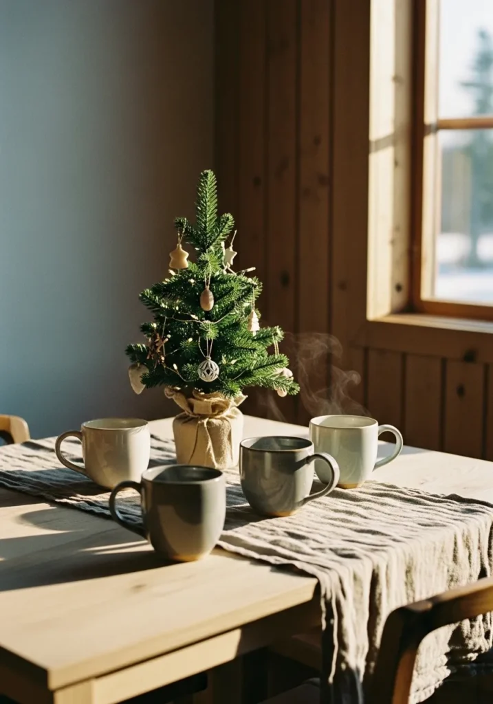 I absolutely love this look because it reminds me that Christmas magic doesn’t have to be loud or extravagant. A tiny tree, a few warm mugs, and good company can fill a room with just as much spirit as any grand display. It’s the kind of setting that makes you want to slow down, sip something cozy, and just enjoy the quiet sparkle of the season.