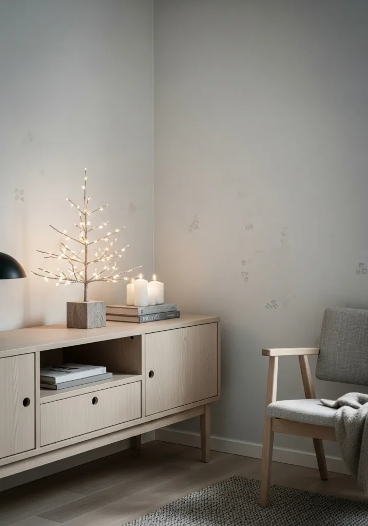 I absolutely adore how this design manages to feel festive without trying too hard. It’s proof that you don’t need a giant tree or a mountain of ornaments to make your home feel special during the holidays. Just a few warm lights, a touch of wood, and that peaceful, uncluttered vibe—honestly, it’s the kind of minimal Christmas magic I could live with all year round.