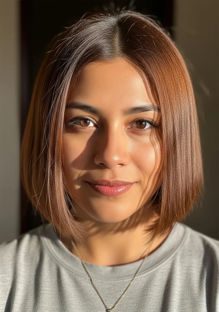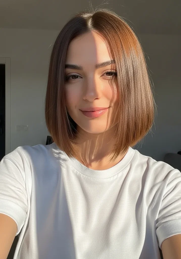 I always enjoy how natural brown shades make a blunt bob look soft but still structured. The shine adds a polished touch that makes the cut look intentional even on low effort days.
