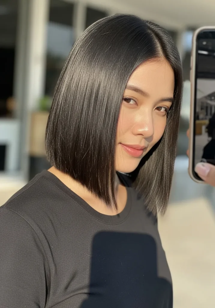 I like how a shiny black bob brings instant confidence. The simplicity feels bold in the best way and it always makes me feel pulled together even on quiet days.
