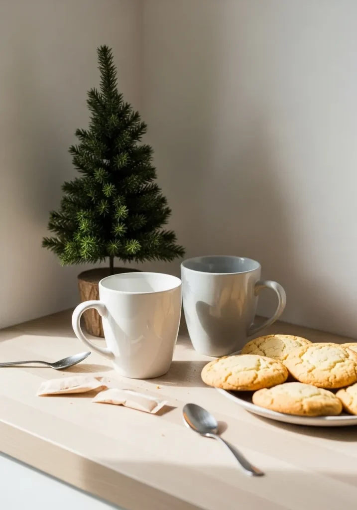 I love how this design feels like a quiet December morning in a small apartment kitchen. It proves that you don’t need a grand tree or glittery ornaments to feel the Christmas spirit. Just a hint of greenery, a few warm treats, and the right light can make the simplest corner feel like your own personal holiday retreat.