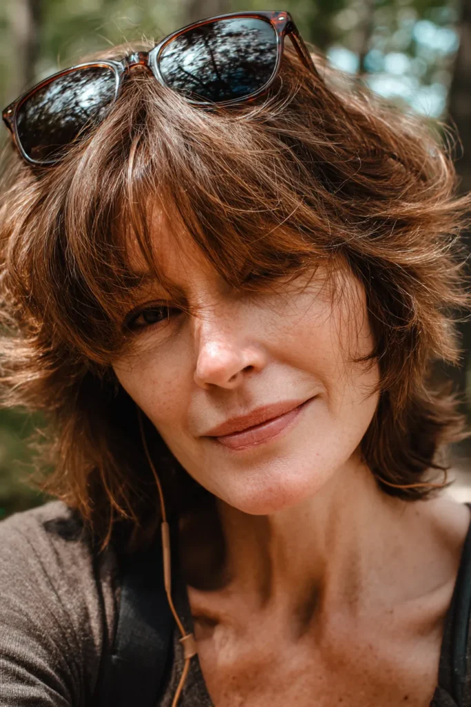 I am absolutely head over heels for how these curly bangs add such a fun, retro energy to the whole look. The layers really allow the curls to bounce and breathe, which makes the style feel incredibly youthful and light-hearted. If you have natural texture and want something that feels easy and cool, this shaggy cut is a total winner.