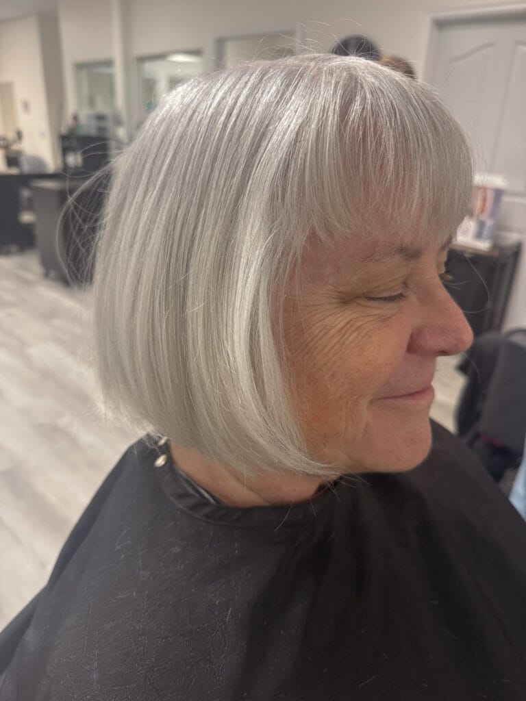 Soft Silver Rounded Bob with Full Fringe