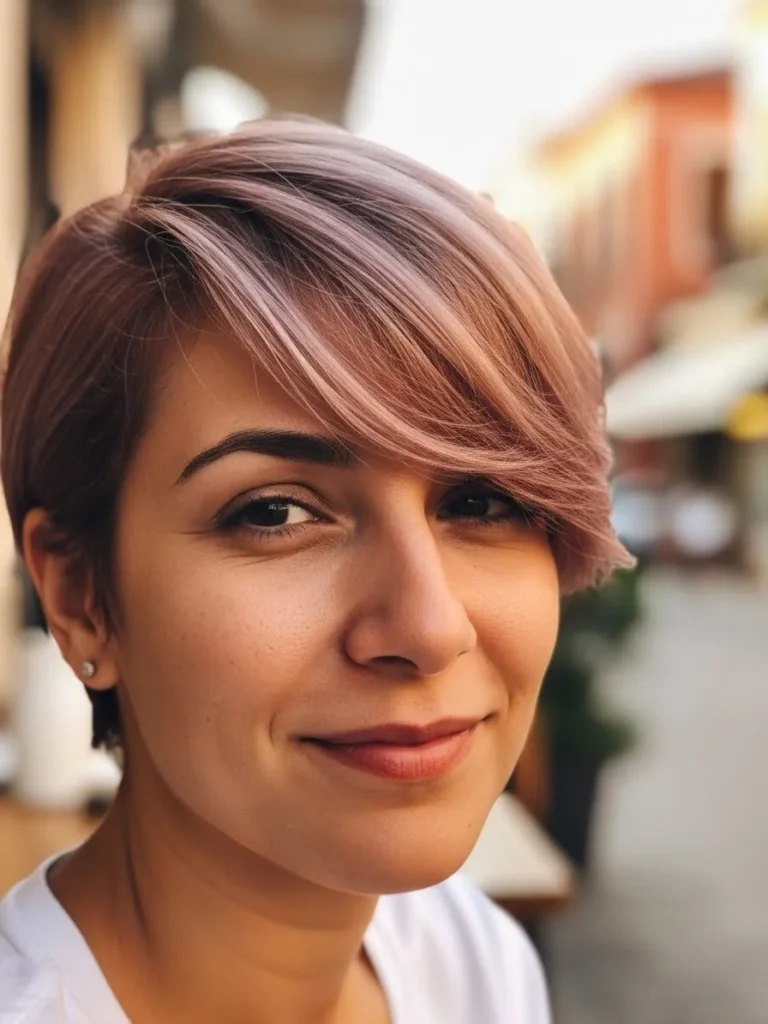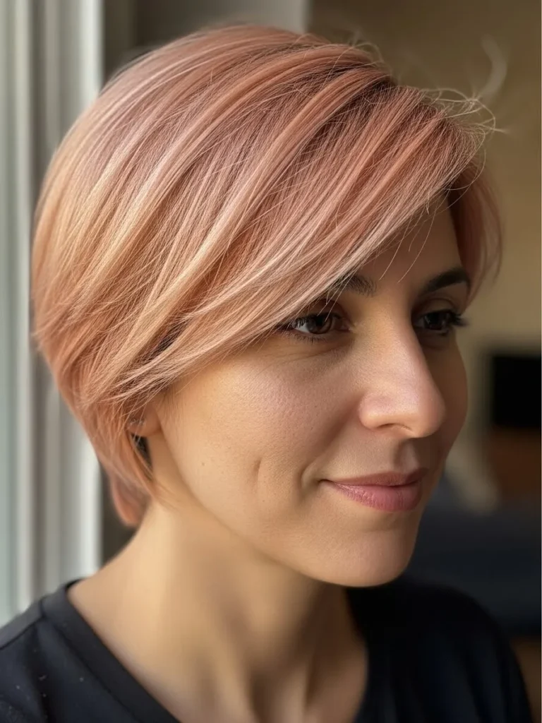 Elegant Rose Gold Pixie with Side-Swept Bangs