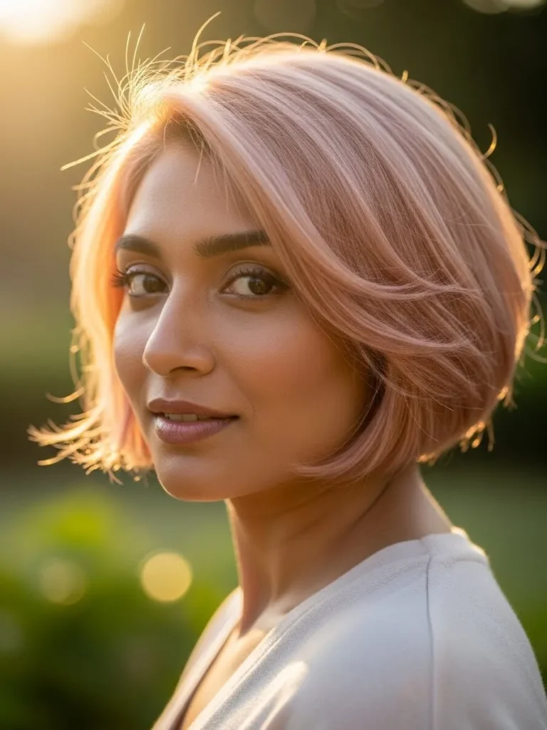 This style is so fun and flattering! The side volume gives it a bit of edge, while the overall softness makes it feel light and feminine. The rose gold color adds that perfect warm touch, making it a great choice for anyone who wants something modern yet soft.