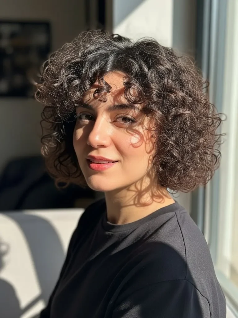 Soft Rounded Curly Bob With Delicate Fringe Curls