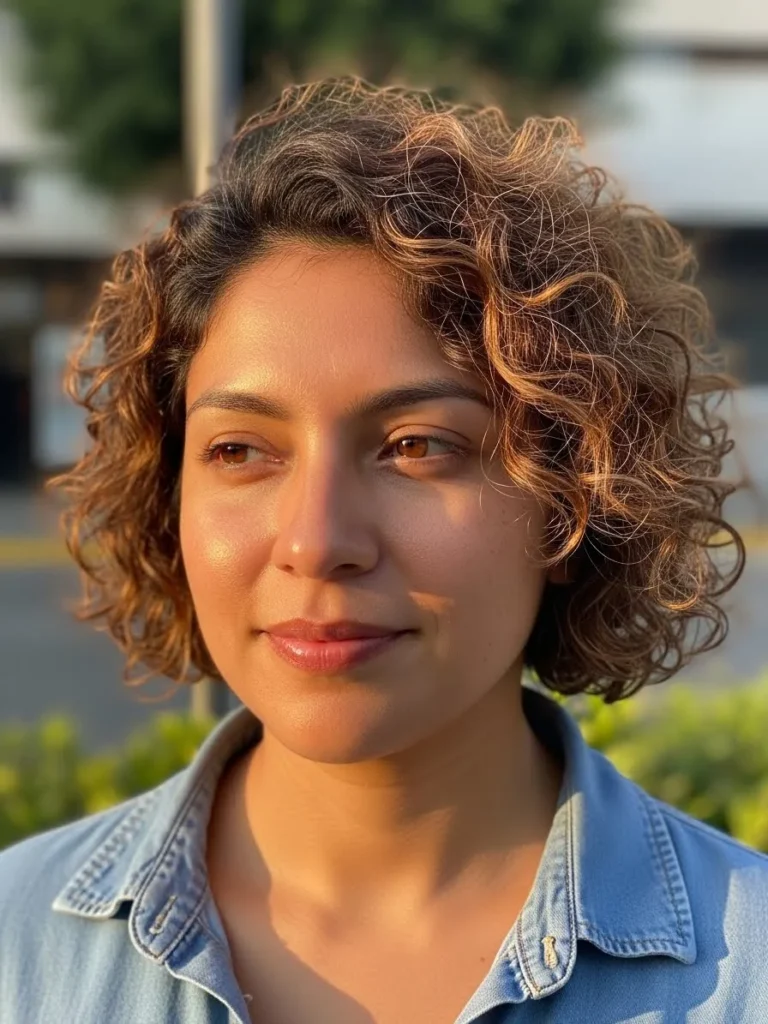 Curly Bob With Sun Glow Highlights And Natural Volume