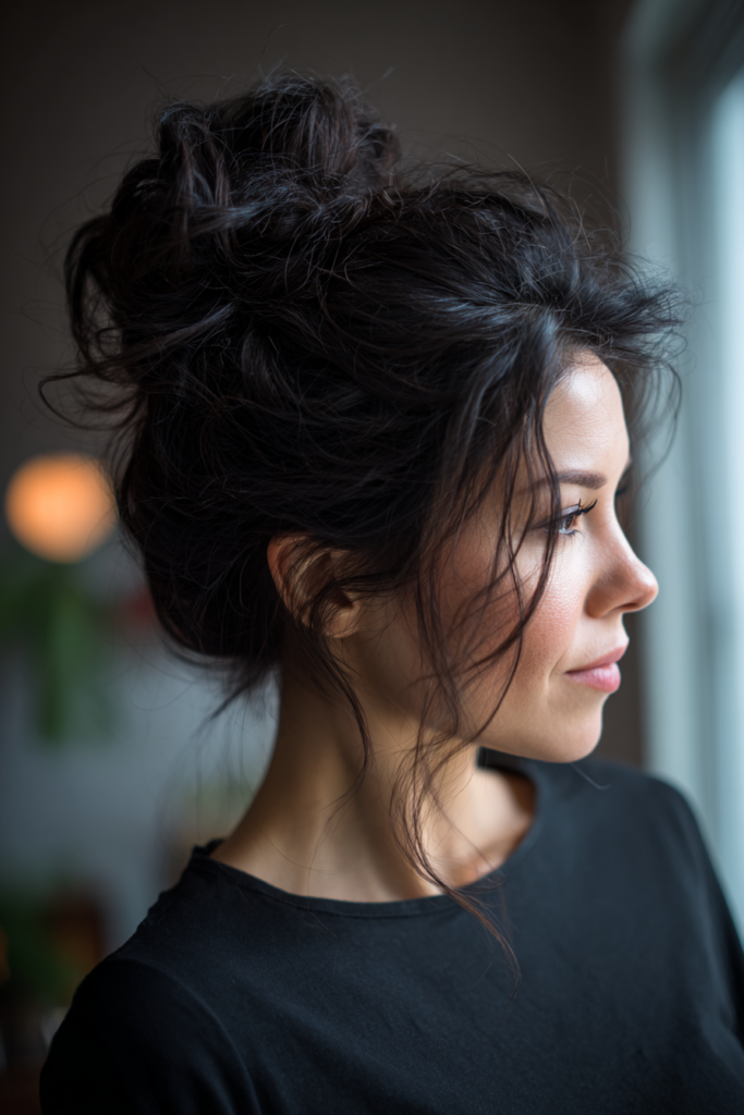 If you love the easy vibe of claw clips, a messy bun gives you that same relaxed feel. The loose strands around the face keep it soft and modern.