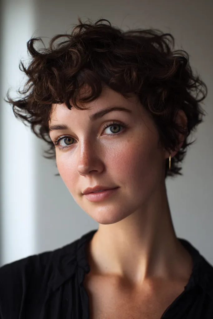 Looking at this style makes me want to reach for a pair of scissors because it is just that charming. It really opens up your face and lets your natural bone structure take center stage while the messy texture keeps it from feeling too stiff. If you are someone who loves a low-maintenance morning routine, then this is definitely for you, since a quick scrunch with some light gel is all you need to keep those curls looking polished and cute.