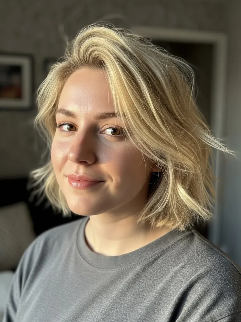 Soft Blonde Choppy Bob With Gentle Curtain Movement