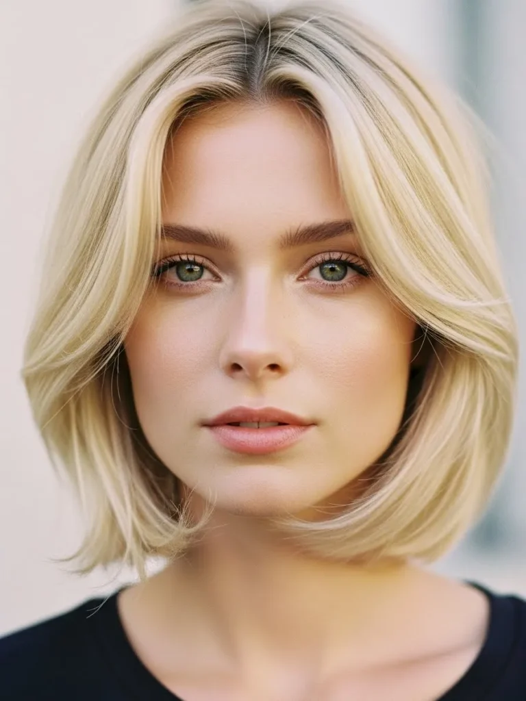 What I really love about this style is how light it feels visually. The feathered ends stop the bob from looking blunt, and the creamy blonde gives that clean glow that works so well year round. It’s one of those cuts that instantly feels modern.