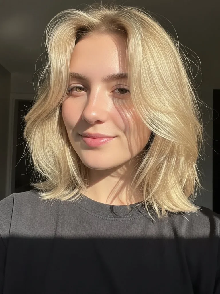I love this look because it instantly brightens my face without feeling high maintenance. The gentle layers add life to fine or medium hair, and the blonde shade reflects light in the prettiest way. It feels fresh, wearable, and perfect for everyday styling with minimal effort.