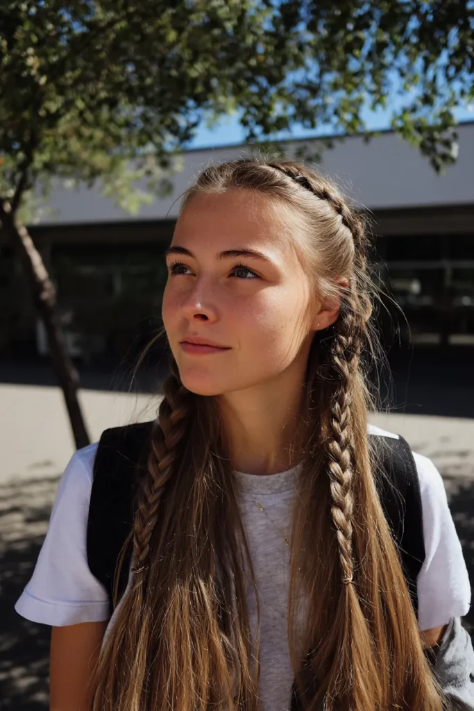 Going for this look is a brilliant move for a long school day packed with sports or after-school clubs. It feels incredibly sturdy and reliable, yet the braided detail adds a touch of elegance that works for any class. The way the braids come together in the back creates a beautiful focal point that stays looking fresh until the final bell rings.